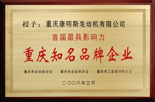 重庆康明斯荣获“最具影响力的重庆知名品牌企业”称号