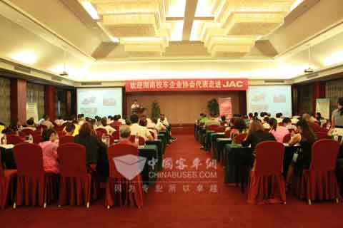 湖南省校车市场是江淮底盘公司的重点战略市场,拥有一大批忠实的客户。为了更好的服务于广大客户,加强与各校车企业的合作交流。2015年7月,江淮底盘公司邀请了湖南省校车企业协会及会员近140人走进江淮汽车公司,近距离参观江淮底盘公司的生产现场,感受江淮底盘的专业、专注。同时成立校车项目组,深入湖南省各地校车企业,将江淮底盘公司的促销政策传递给客户,共同推进湖南校车事业的发展。