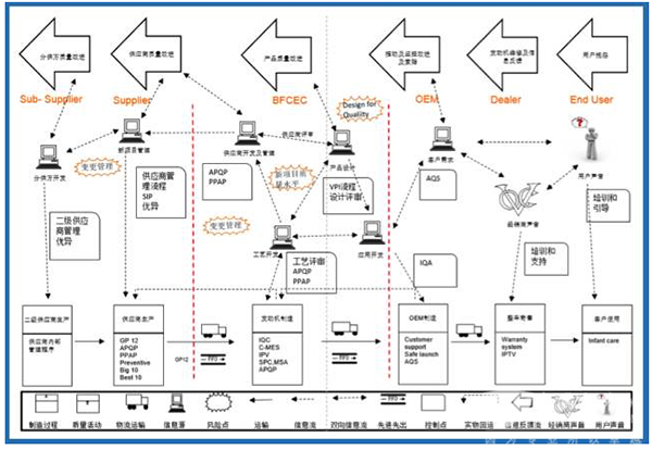 在全球范围内,康明斯通过应用价值流质量管理理论提升了整个价值流的质量水平。而这种先进理论和经验也很好地应用到了康明斯在中国的制造企业。在福田康明斯发动机公司,工厂以先进制造的高价值流质量水平为依托,拉动供应商,新项目和客户提高质量管理水平,优化信息流和实物流质量;通过先进引领,标杆拉动,持续改进等方法,促使价值流质量管理能力日新月异。它在福田康明斯建设世界级发动机制造基地的过程中发挥了关键的作用。