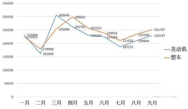 9月发动机继续跟随整车的走势,正在走出淡季的势头上,7到9月的销量走势几乎是一条直线,回暖非常的有力。10月的前景也非常的好,预计还会增涨,但是增涨速度应该不会超过9月。