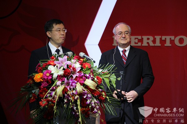 美驰中国区董事总经理Robin Rehel,徐工集团副总经理、徐州美驰车桥有限公司副董事长杨勇,美驰全球技术总监Tomaz Varela,中国道路与运输协会城市客运分会副秘书长吴同起、江淮汽车重型车研究院院长周福庚,北京福田戴姆勒汽车采购副总裁张红松等嘉宾,江淮汽车、重庆铃木、青岛一汽、东风柳汽、山西大运、宇通客车、苏州金龙、厦门金龙、厦门金旅、上海申沃、上海申龙、凯马百路佳、扬州亚星、北方客车、丹东黄海等整车企业代表,卡客车经销商代表,以及媒体朋友共同见证美驰车桥新品发布,零距离感受科技力量。