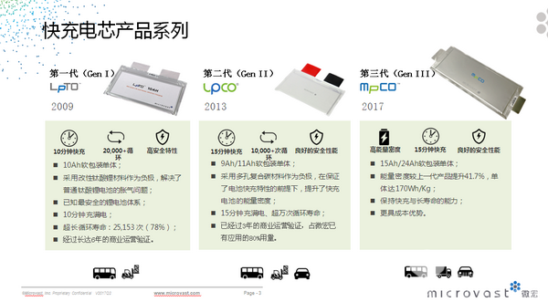 随着一段时间的使用,用户对快充电池也提出了提高能量密度以及性价比的建议。于是,微宏针对公交运营绩效需求开发出更高能力密度和更长续航里程,在2013年推出了二代LpCO多元复合锂电池,实现了4C充放,循环寿命超过10,000次。