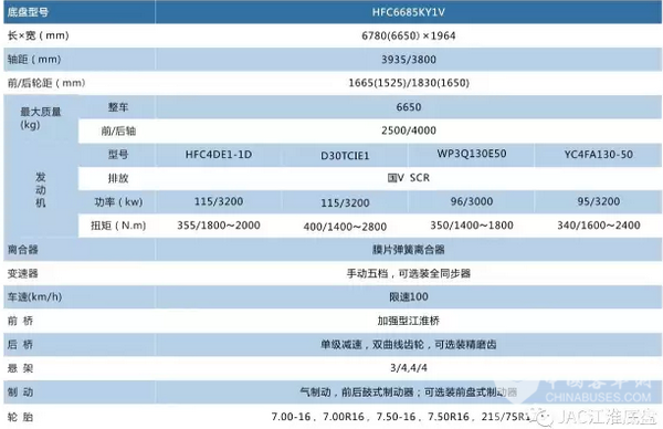 江淮客车底盘商旅通Z系列——HFC6685KY1V系列主要参数如下: