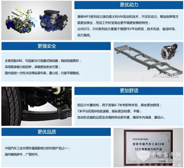在客车底盘的江湖,各大底盘制造商同样在施展着各自的十八般武艺,期望赢得用户的转身。这其中,江淮底盘就凭借其过硬的产品质量和优势的产品服务,一次次脱颖而出,赢得了众多用户的信赖和转身。