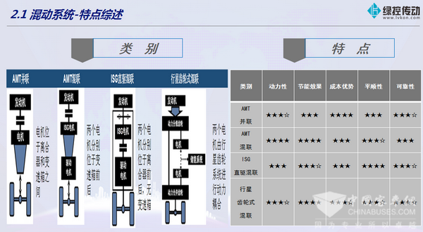 为此,绿控下一步的技术研发的方向,将在原有的并联式混合动力之外,深度开发包括基于行星排混联式混合动力,以及基于双电机加两档变速器、四档变速器的MHD系列混联式混合动力产品。在纯电动方面,绿控除了原有的针对卡客车的电机加变速器产品之外,未来还将开发针对物流车、乘用车的“电机+减速箱”的产品。