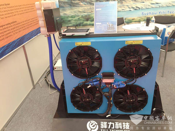 驿力科技纯电动版智能冷却系统以电机散热为核心,实现了驱动电机、电控系统一体化水冷散热,智能化控制,散热效果好。驿力纯电动版智能冷却系统模块化设计,可以根据不同纯电动客车进行匹配,实现了为客车量身定制“散热系统”。值得一提的是,展会现场海格客车出口以色列100辆超级电容公交车就匹配的是本款纯电动智能冷却系统。