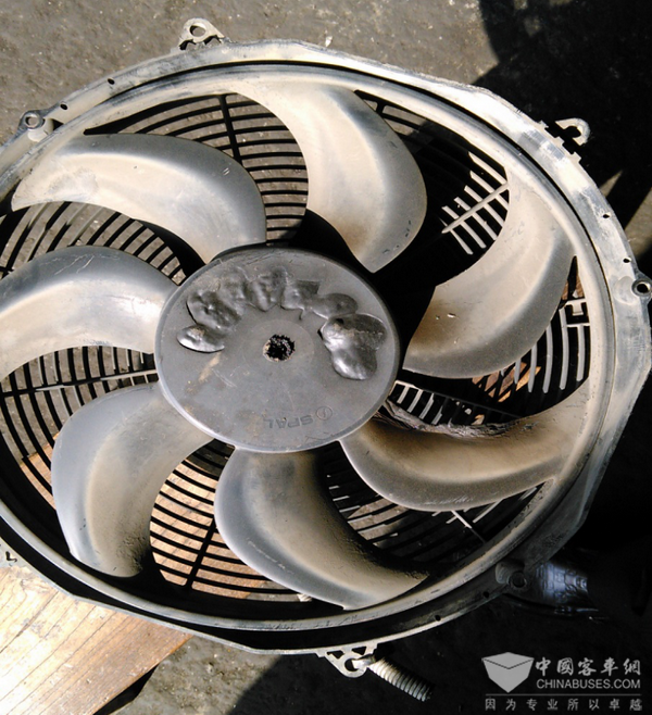 扇叶有泥沙,电机长时间高负荷工作,高温融化