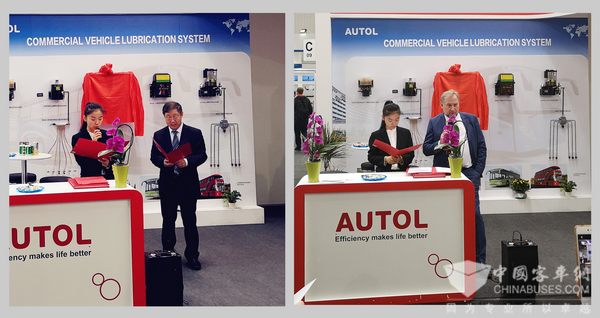 左图:奥特科技董事长赵大平先生致辞 右图:LUBMANN营销总监Michel Zwankhuizen先生致辞
