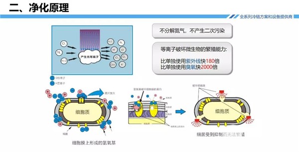 该系统主要利用光等离子、负离子和活性氧传送微生物,同时用纳米深频等外光和光催化技术进行净化,最终产物是二氧化碳、水和氧分子等无机无害小分子。既解决了传统空气净化方法存在的二次污染问题,又不会对人体造成任何伤害,真正实现人机共存。同时该系统功率小、耗电量低,电压12/24V,可不间断连续使用,在空调管道中几乎不产生任何风阻和能量损耗,而且该系统采用轻巧化设计,产品体积小,重量轻,便于安装和拆卸,无需改变车内结构和空调结构,使用周期长。