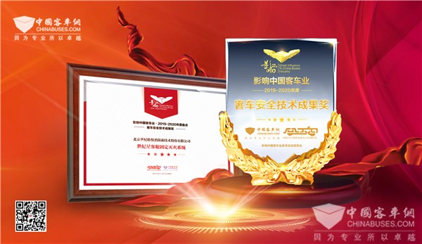 由于疫情的原因,第14届影响客车业活动由线下改为线上,系列活动已成功举办14届,该活动旨在传播客车行业最有影响的事件、最有价值的思想、最具前瞻的产品。系列活动以其权威性、公正性、公开性在中国客车行业内赢得极高声誉。经过近百万网友投票和影响客车业组委会层层选拔,最终,北京世纪联保消防新技术股份有限公司(简称:世纪联保)汇集中国航天和中国科学院多项高新技术,针对客舱火灾特点专门研制的“世纪星客舱固定灭火系统”荣膺2019-2020年度“客车安全技术成果奖”,这是该产品继2018-2019年度再获殊荣。
