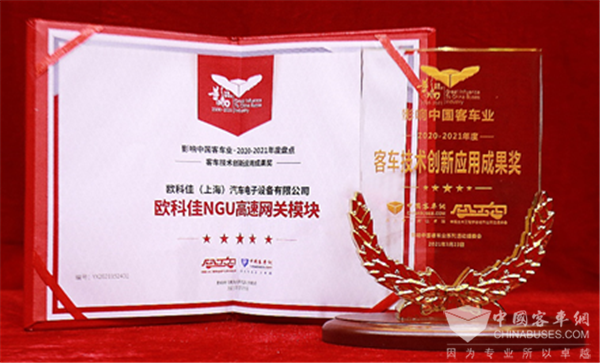 NGU高速网关模块荣获2020-2021年度“客车技术创新应用成果奖”