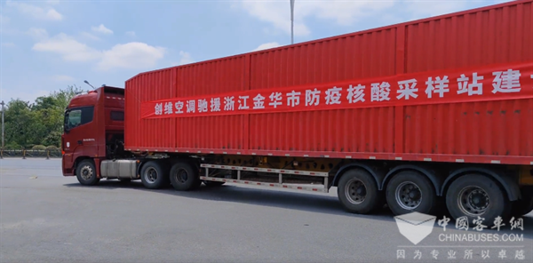 2022年5月24日,首批300套 i 健康创维空调完成装车,出发浙江省金华市,驰援当地核酸采样站建设工作。本次空调合计1900套,将根据当地的施工进度,陆续运输抵达;空调将安装于金华市的各个小区核酸采样站,为即将到来的炎热夏天,辛苦工作在抗疫一线的大白们提供舒适、清凉的工作环境。
