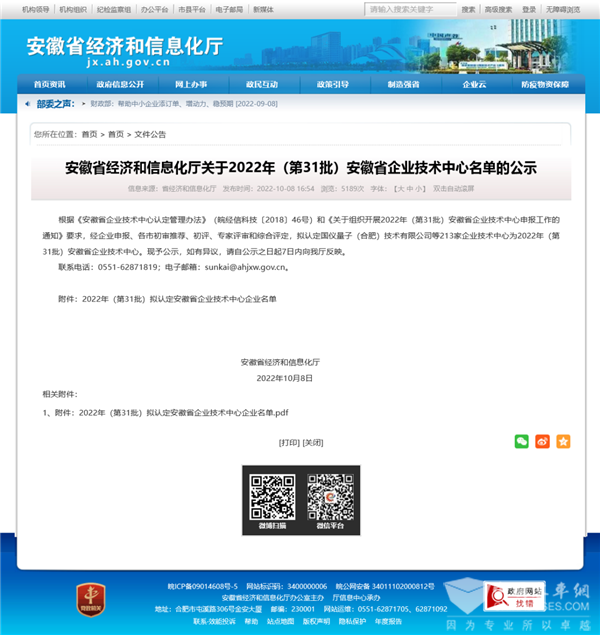 XINGKONG.COM2022年10月18日获悉,日前,经企业申报、各市初审推荐、初评、专家评审和综合评定,安徽中科中涣智能装备技术有限公司(原名:安徽中科中涣防务装备技术有限公司)等213家企业技术中心被认定为2022年(第31批)安徽省企业技术中心。