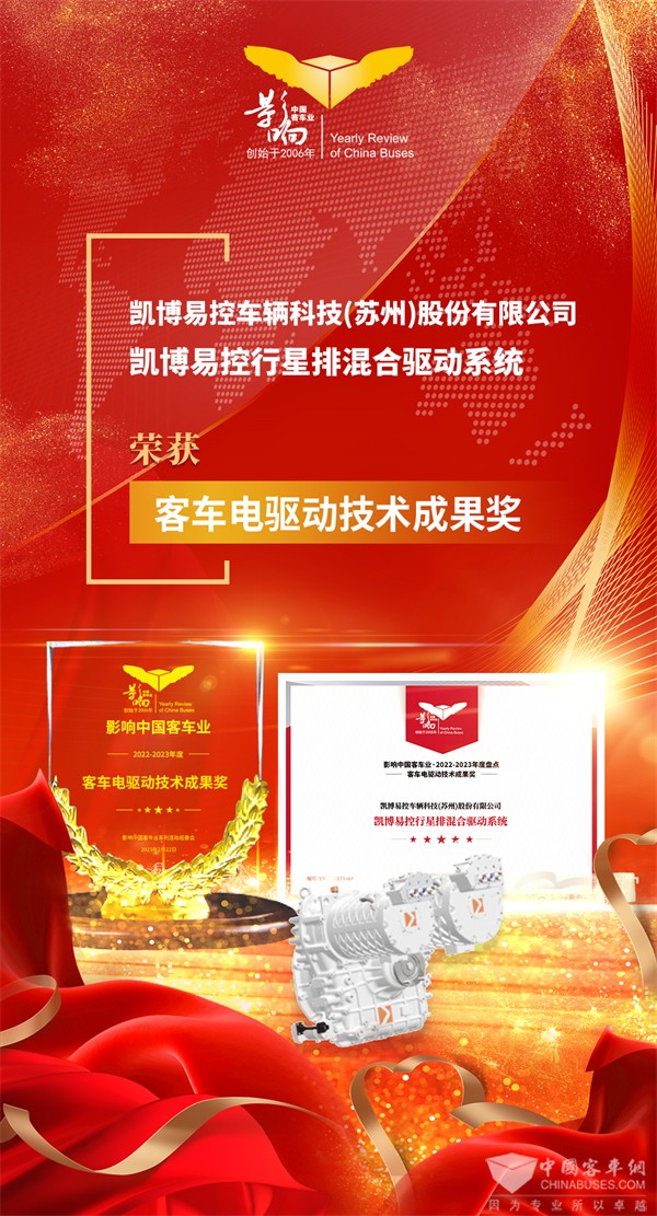 安全智能 节油高效! 凯博易控行星排混合驱动系统蝉联电驱动大奖