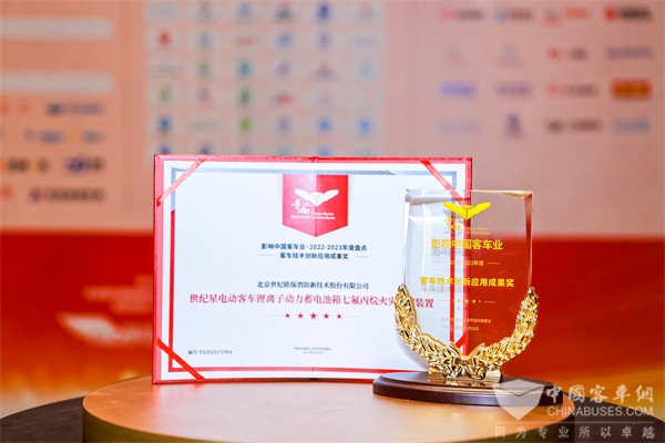 “客车技术创新应用成果奖”:世纪星电动客车锂离子动力蓄电池箱七氟丙烷火灾抑制装置