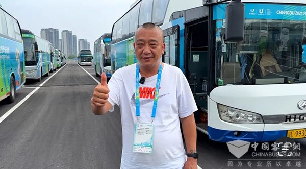司机罗师傅负责大运会游泳击剑馆中心路线。他很骄傲能和自己的爱车一起服务大运会。罗师傅介绍,他使用玉柴机器多年,从国2时期就开始开搭载玉柴发动机的旅游车。这么多年来,凭借细致科学的维保与玉柴机器的出色可靠性,车辆的动力系统从未出过大故障。
