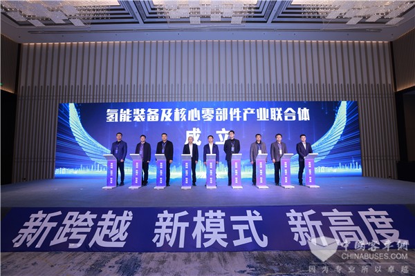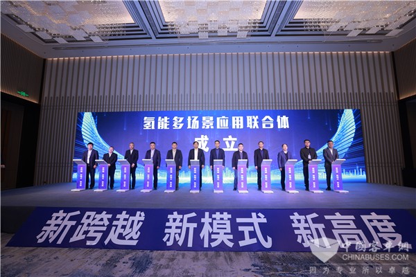 为确保跨越行动方案切实有效落地,推介张家口市创新绿色发展新模式,在场30余家企业共同发起成立“跨越行动战略合作联合体”,出席启动仪式的市领导、专家共同完成见证。联合体的成立将进一步完善张家口市氢能产业链条,以“可再生能源绿电绿氢供应”、“氢能装备及核心零部件产业”、“氢能多场景应用”为出口,找准产业链发展关键点并相互配套补链,推动拓宽张家口氢能市场和落地应用,产生更大经济效益。