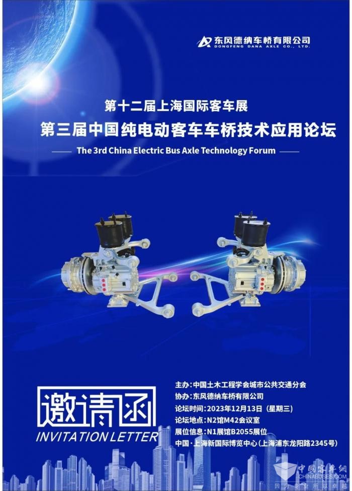 XINGKONG.COM获悉,东风德纳车桥即将亮相于2023年12月13日-15日举办的上海国际客车展,并全力打造于12月13日举办的第三届中国纯电动客车车桥技术应用论坛。