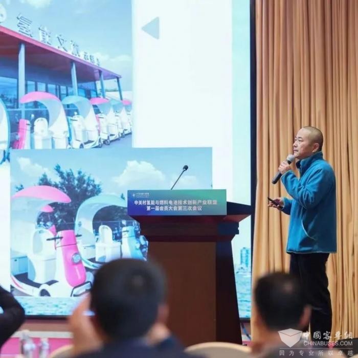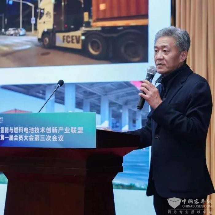 联盟副秘书长、北京亿华通科技股份有限公司常务副总经理于民代表联盟发布“推进京津冀氢能高速示范”倡议,为支撑推进京津冀氢能产业协同发展,响应中国燃料电池汽车大会关于《共建中国氢能高速行动倡议》,联合氢能产业链各相关单位,对全体联盟成员提出倡议:一是推动燃料电池车辆跨区域联合推广应用,构建从绿氢供应到交通领域规模化、跨区域综合应用示范;二是以京张、京唐为重点线路,协助政府相关部门,推动示范线路运行的燃料电池车辆高速过路费用政策性减免;三是构建以国企实际物资运力为应用场景,以联盟骨干会员为主体,以集中攻关研发带动液氢重卡应用示范。