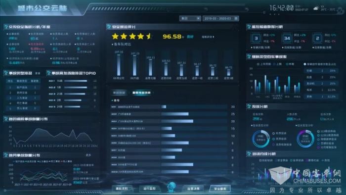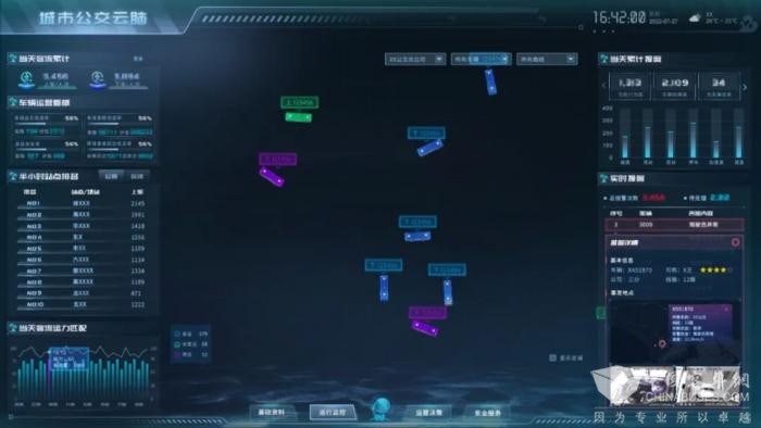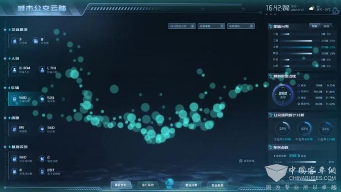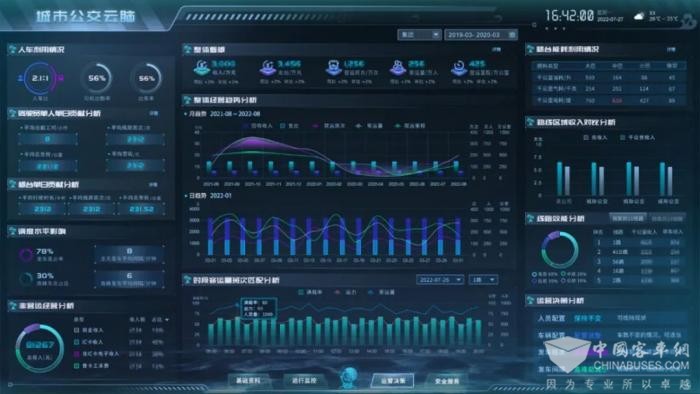 针对这一行业痛点,通达电气依托大数据分析,为公交企业经营“把脉”,科学诊断营运业务,并根据诊断结果,结合智能算法,对症“下药”,智能优化营运业务。对此,通达电气打造集星空(中国)沙盘、数据资产、实时运行监控、运营决策、安全服务五大板块于一体的公交“智慧大脑”。
