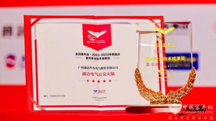 活动当晚,第十八届影响客车业年度盘点评选结果正式出炉,经过专业读者投票与评选会专家综合评定,广州通达汽车电气股份有限公司推送的公交运营大数据分析系统“公交大脑”从诸多参选产品中脱颖而出,荣膺影响客车业2023-2024年度“客车安全技术成果奖”。