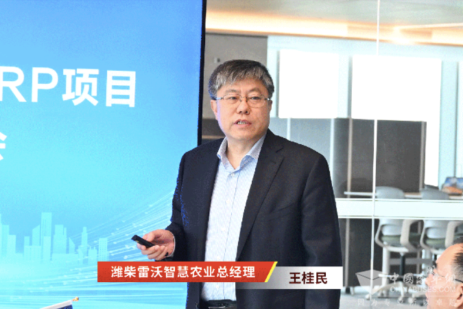 会上,潍柴雷沃智慧农业总经理王桂民同志汇报了金蝶ERP重构项目经验。
