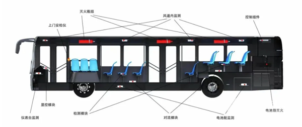 中科中涣自主研发的整车火情预警及防护系统,可通过安装在隐蔽区域的监测模块采集CO、温度等多种参数,对车辆进行全车实时监测,并通过智能处理终端将报警信息和自检信息上传系统,可以及时发现潜在安全隐患,及时采取措施,有效降低公交车火灾发生的概率。