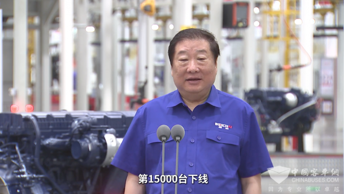 谭旭光调研了加工、装试等生产线,并与员工共同见证潍柴高端发动机数字化工厂全线达产暨第15000台产品下线。