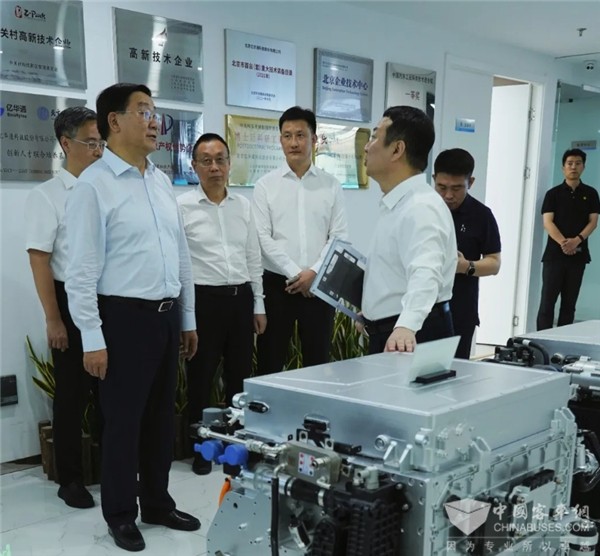 王凤朝一行参观了亿华通北京总部,深入了解了公司在氢能和燃料电池领域的核心产品,并通过线上连线形式考察生产基地、研发测试中心。在座谈会上,双方就成都市发展氢能产业,打造辐射西南的“绿氢之都”,推动绿氢制备上量发展,氢能基础设施建设,以及亿华通在技术研发、市场应用及产业链整合等方面展开深入交流。