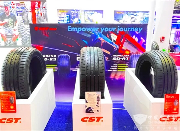 此次展会现场,CST正新轮胎展出了轿车胎、卡货车胎及工程车胎别的多款主推产品,包括今年上市的新能源轿车胎正新黑钻E·X1 SALEKS。