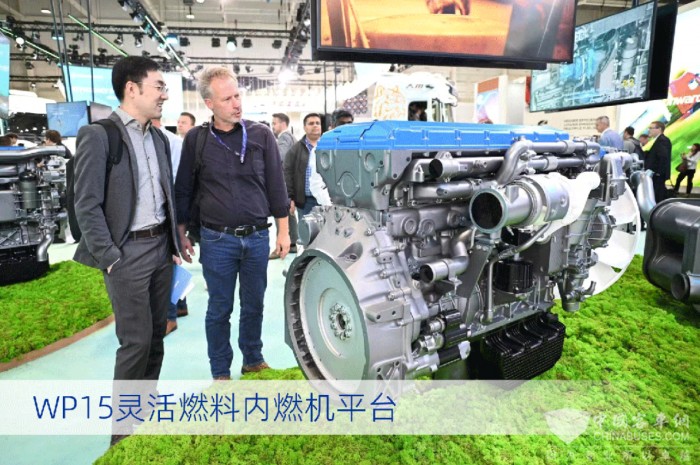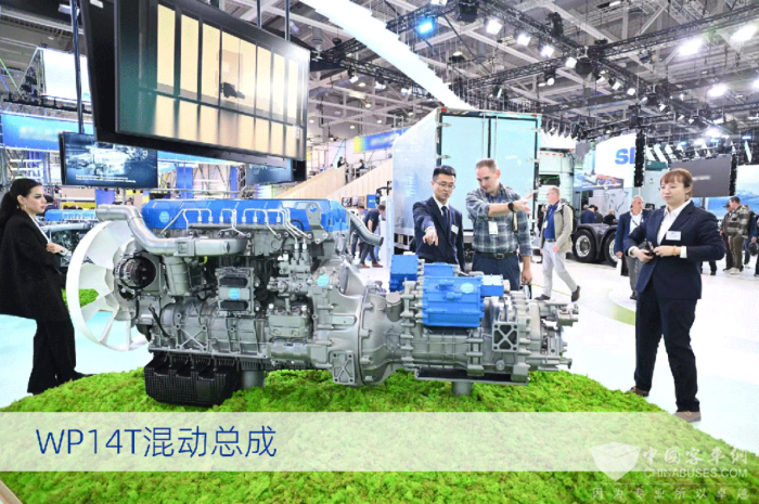 展会现场,潍柴带来了满足欧Ⅶ排放标准的53%高热效率柴油机、WP14T混动总成、WP15灵活燃料内燃机平台、300kW氢燃料电池动力系统等覆盖多技术路线的硬核产品,向全世界彰显了潍柴在传统动力和新能源动力领域的硬核实力。