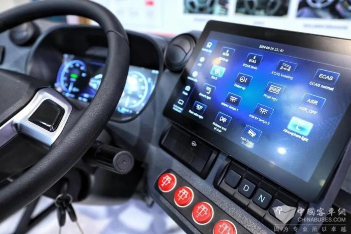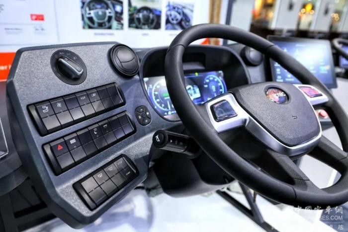 数字驾驶舱海外版在设计上充分考虑了海外商用车市场的实际应用场景和文化背景。采用了简洁、大气的设计风格和海外流行的设计元素,展现出简约而不失大气、时尚而不失豪华的独特魅力。一体化随动结构设计让方向盘、仪表、操作开关完美结合,四向调节的仪表台更是确保了不同身材驾驶员的舒适体验。全车信息化一体式集成显示,更是将智能化与人性化发挥到了极致。
