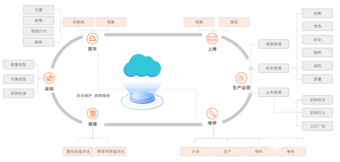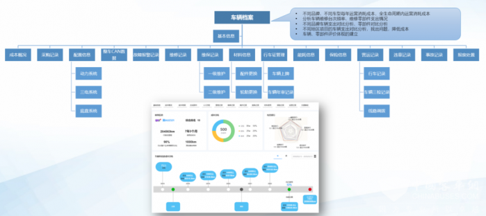 车辆全景档案:系统建立包含车辆静态数据(基本信息)以及车辆动态数据(运营数据、车联网数据)的车辆全景档案,实现多车型多维度的车辆大数据积累。