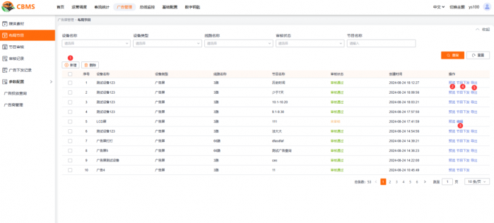 管理车辆内部广告屏,支持按站点及位置自动触发播放相应广告,支持车内广告的远程管理和批量分发部署,支持广告下发审核及投放查询。