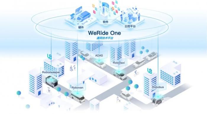 文远知行创新打造出WeRide One自动驾驶通用技术平台,让破局成为可能。WeRide One自动驾驶通用技术平台对自动驾驶系统中的软件、硬件及主要平台进行高度模块化提炼,形成了一套通用性技术架构,从而以更低的成本为各类车型提供标准化自动驾驶能力,搭建出“1个平台+3大场景+5大产品”的多元商业化战略,包含自动驾驶出租车、自动驾驶小巴、自动驾驶货运车、自动驾驶环卫车、高阶智能驾驶等五大产品,覆盖智慧出行、智慧货运和智慧环卫三大应用场景。