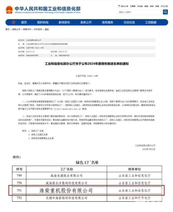 - 重磅!潍柴重机获评国家级“绿色工厂”[02-19]