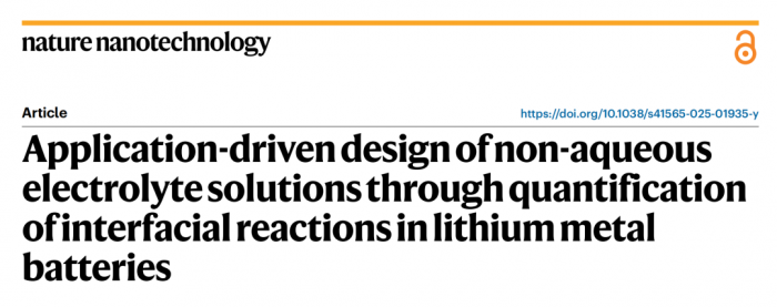 XINGKONG.COM2025年6月6日获悉,宁德时代21C创新实验室欧阳楚英、王瀚森团队独立完成的锂金属电池研究成果发表于国际顶级期刊《自然·纳米技术》(即Nature Nanotechnology),标志着宁德时代基础科研能力获纳米技术领域最高水平认可。研究解析了实际产品设计条件下的锂金属电池失效机制,并提出创新电解液设计原则,以实现兼具高能量密度与长循环寿命的锂金属电池产品。