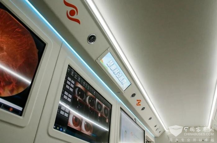 此次“慧眼移动医院”的重大技术升级,通达电气在车辆整体方案设计上也实现了进一步优化。首先在整车的设计上,结合车内医疗设备的使用,量身定制固定方案,车辆还搭配了通达电气路牌、多媒体信息屏、塞拉门、氛围灯、通道灯等系列成熟产品,对车内布局做整体定制化设计,采用嵌入式安装方案,做到美观的同时又尽可能的释放车内空间。在车辆电气方案同步进行优化,设备高度集成化控制,有效降低能耗,提升可靠性和扩展性。车辆除了搭配通达电气自主创研的减震保护系统及5G独立核心网之外,还首次部署了先进的AI人机交互功能,实现语音唤醒,患者可轻松自助操作,实现高智能化移动医疗服务体验。