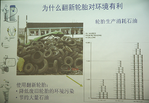 - 大量减少石油消耗。因为轮胎生产消耗石油,生产一条新的卡车轮胎平均消耗石油84升,而翻新一条卡车轮胎平均消耗石油28升