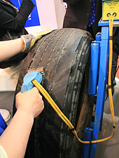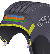 当轮胎剩余花纹深度为2-3毫米,且胎体状况完好时,按胎面花纹形状将花纹沟底部胶料向下去除3-4毫米的过程,称为“轮胎刻沟”。米其林卡客车轮胎具有极高的可刻沟性能,可以延长轮胎寿命25%。在原始胎面花纹胶底下,预留了足够厚的同样胶质橡胶供轮胎进行刻沟,即保证刻沟后的轮胎与新胎一样安全。轮胎刻沟的好处:提高安全性,当轮胎花纹接近磨光时,通过刻沟可以立即增强轮胎抓地性能;增加行驶里程,降低运输成本。 |
