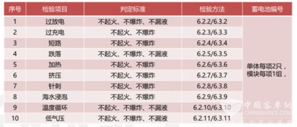 针对《电动客车安全技术条件》,虽然放开了对三元应用于电动客车的限制,但是增加了热失控与热扩展试验——电池测试方案