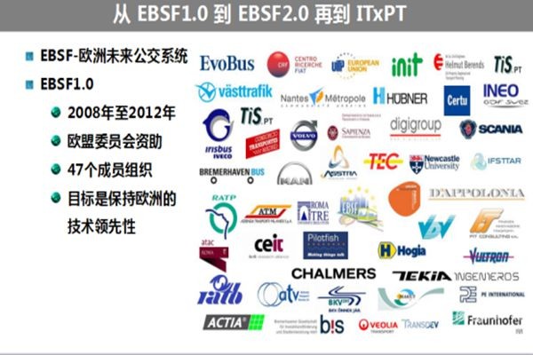 到了EBSF2.0阶段,为什么有2.0这个阶段呢?因为1.0的阶段获得了很多的成果,在2.0的阶段,需要进一步扩大这些成果,并逐步把这些成果转化成一些标准。如以IT行业标准为基础,确定了车载设备的现场测试规范。同时它又增加了5个示范城市,包含巴黎、里昂等等。最终形成的这个欧洲标准叫EN13149,这个过程由2015开始,将会持续到2020年。