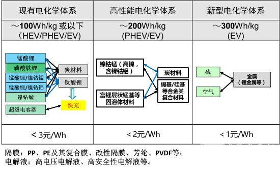 在国家“十三五”新能源重点研发专项里面,在产业化层面,到2020年的时候,电池单体的指标要做到300瓦时每公斤,成本要做到每瓦时0.8元人民币,电池系统要求做到200瓦时每公斤;在基础研究层面,到2020年的时候,新型锂离子电池要做到400瓦时每公斤,新体系电池要做到500瓦时每公斤,实际上就是把原来的863和973做了一个整合。一个是基础研究的方面,加大对新体系电池的研究,另一个是从产业化的角度,对一些产业化技术的研发进行一些支持。