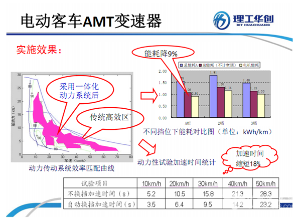 林教授表示,用户单位在选择驱动电机产品时,也要区别对待。现在城市公交车辆的最高车速一般最快不过70公里/小时,这种情况下,采用直驱电机就足够了。但如果是要走快速车道,相应车速就会达到80、90公里/小时,就需要考虑采用带有变速箱的电机,也就是带AMT自动变速器的机电一体化电驱动系统。