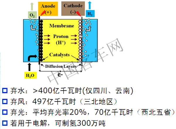 众所周知,我国可再生能源发展非常快,导致目前国内弃风,弃光,弃水现象严重,2016年,仅仅四川、云南两省弃水超过400亿千瓦时;三北地区弃风达497亿千瓦时;西北五省平均弃光率20%,约为70亿千瓦时,这些能源如果用于电解,可制氢达300万吨。