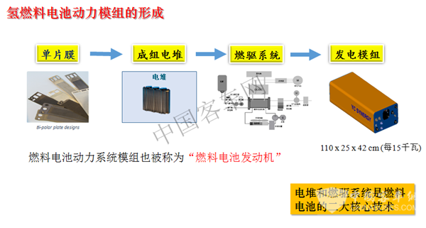 燃料电池这个名词给人误导,以为是燃烧,其实不是的。简单一点说就是当氢气穿过燃料电池的质子交换膜时,就发电了,这是简单的原理。