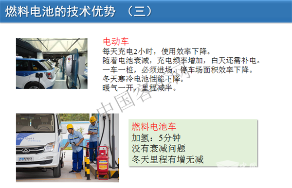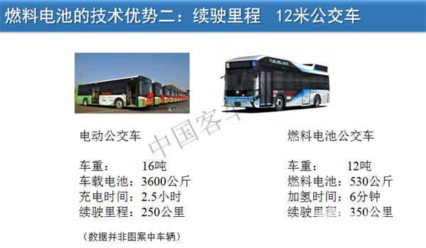 再看一下大巴,电动公交车重16吨,目前的公交车不再装这么多电池,电池可以减到250度电。同时,如果电池可以克服低温,电动汽车能够在寒冷地区运行我们也非常高兴看见这一技术进步。因为燃料电池也需要配电池,如果电池在寒冷天气情况下需要额外的温度,就会消耗车载氢气。同时,动力电池有衰减问题,但燃料电池不存在这样的问题。如果将来发展冷链,要节能环保还要零排放,燃料电池也是比较好的解决方案。