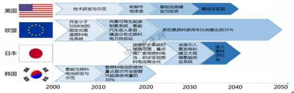 从各国氢能源产业规划来看,多数国家是以氢燃料电池为突破口,逐步完善氢能源产业配套,在2040-2050年实现氢能源社会。