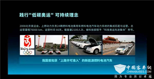 所有的荣誉和背后努力都是成正比,奥运会安全放在首位的,使用燃料电池汽车本身难度可想而知,当时车辆的运营方案也一度被否,从上海市到中央,从科技部到北京市委,最后在时任北京市市长刘奇的协调下,我们最终获批运营这样一批燃料电池汽车,为北京奥运会进行服务,最终这批车甚至开进了中南海,整个示范历时66天,载客量2100人次,总行驶公里7.6万公里,这份成绩也深深的印刻在每一个上海人心中。