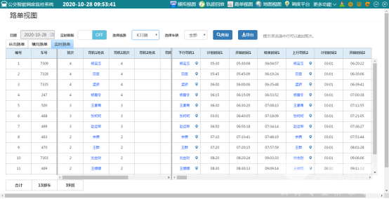 提供各种运营统计报表和明细报表,包括发车班次报表、单程发车明细、公里统计报表、早晚高峰发车率、首末班准点报表、到站准点考核报表、串车大间隔考核报表、车辆客流明细等。